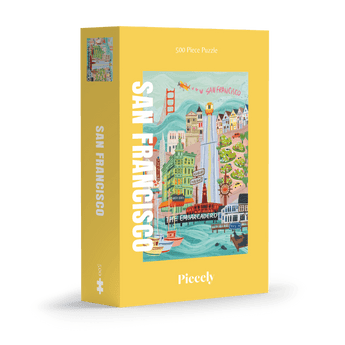 Für alle, die ein bisschen mehr Zeit haben: Das 500-Teile Puzzle „San Francisco“ bringt die ikonischen Hügel, die Golden Gate Bridge und die bunten Häuser der Stadt in dein Wohnzimmer. Inklusive Poster und Soft-Touch Oberfläche. Das Puzzle ist plastikfrei verpackt und aus recyceltem Altpapier gefertigt – perfekt für entspannte Puzzle-Abende mit Stil und Stadt-Feeling. Illustriert von Jocelyn Kao.